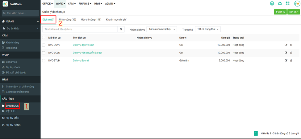 Để thêm các hạng mục con cho các hạng mục đã chọn, chỉnh sửa chi tiết hoặc xoá hạng mục vừa tạo, bấm vào các chức năng bên cạnh tên hạng mục vừa tạo&#x20;