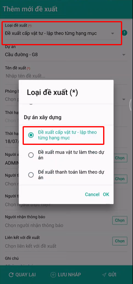 # Lập đề xuất cấp vật tư trên Web và App Mobile