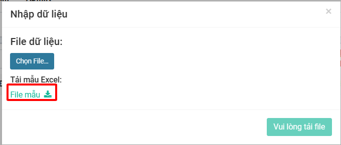Hoặc có thể dùng nút **Nhập dữ liệu**, upload file Excel theo **File mẫu** của FastCons lên