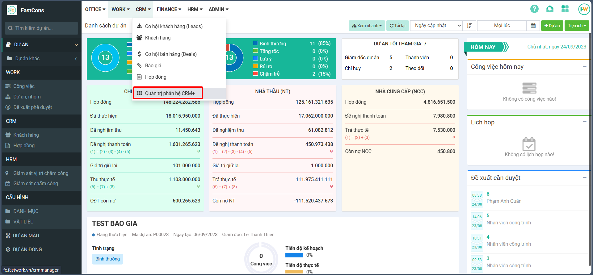**Bước 1**: Từ tab **CRM** → Chọn **“Quản trị phân hệ CRM+”**&#x20;