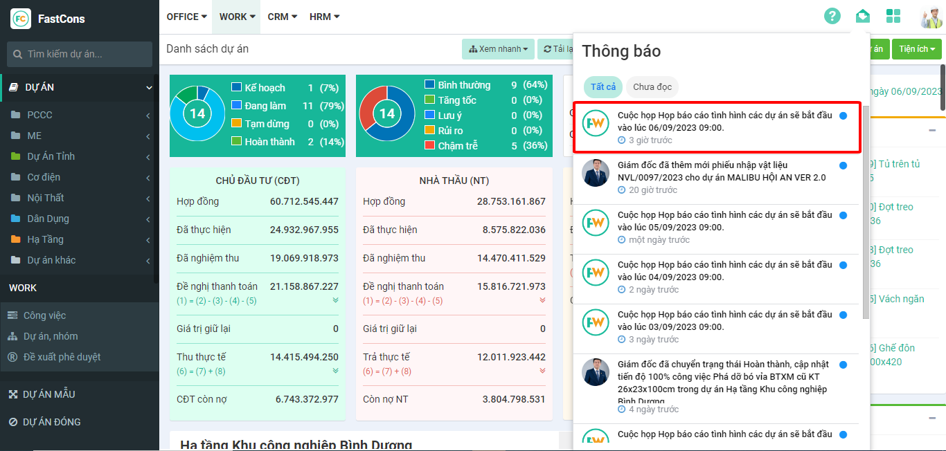 Bước 1: Từ thông báo **hộp thư thông báo** => Chọn **thông báo** tham gia cuộc họp