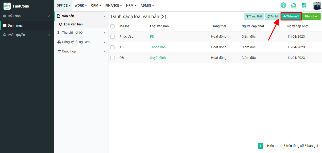 Bước 3 : Chọn **Thêm mới** --> điền đầy đủ các mục của văn bản thiết lập --> **Lưu**